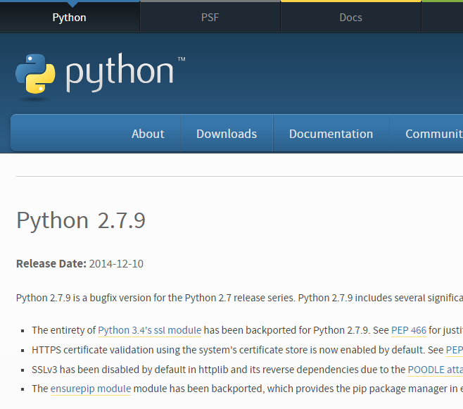下のダウンロードからPython2.7のリンクをクリック。