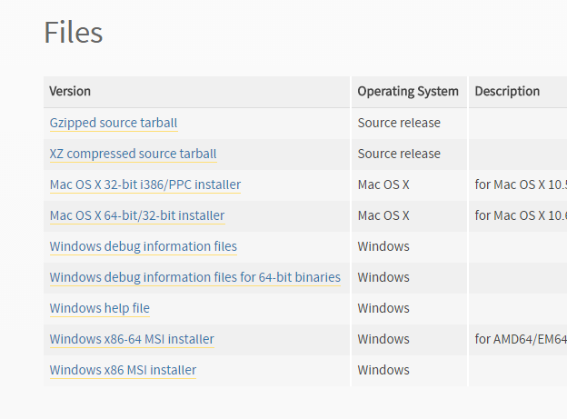 * Install Python 2.7.6 matching the bitness of your operating system. For any questions, please refer to their FAQ. Default settings are perfect.