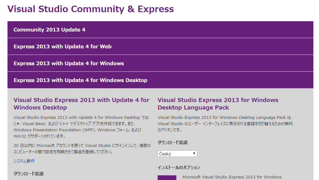 Express 2013 with Update 4 for Windows Desktop をインストール。