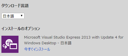 - Visual Studio Express 2013 for Windows Desktopをインストール
