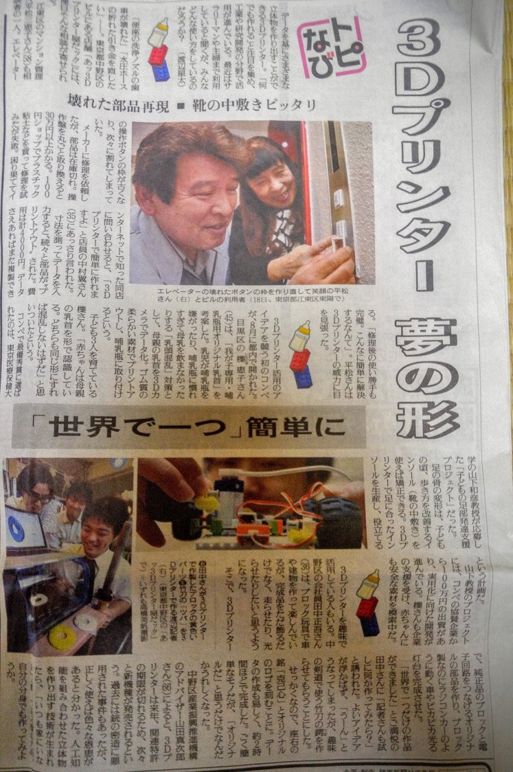 昨年末に3Dプリンタ関連でちょっとだけ読売新聞に掲載されました