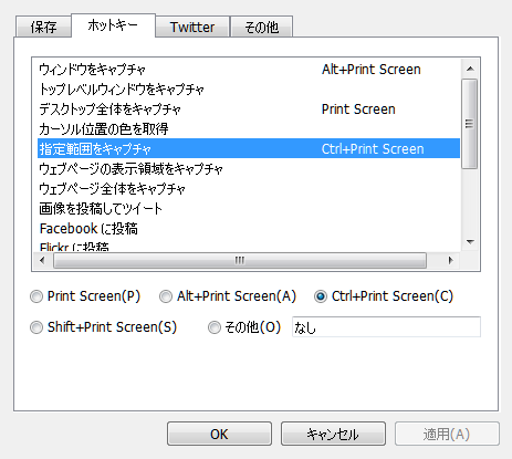 指定範囲をキャプチャにCtrl+PrintScreenを割り当てておく。