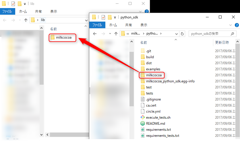 まず、こちらのMilkcocoaのpython sdkをダウンロードして移植します。