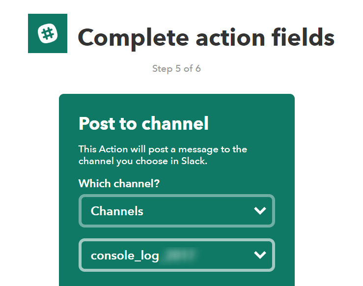 メッセージを受け取ったあとのSlackチャットメッセージに送る設定をします。
