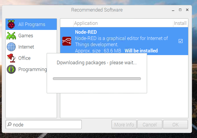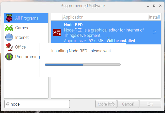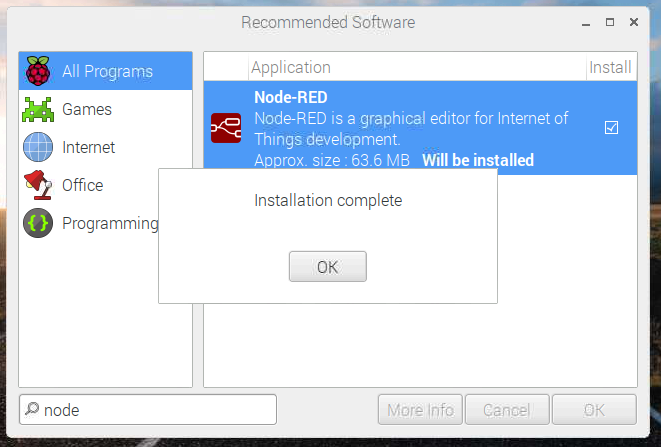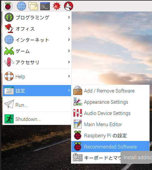ですが、Raspberry Piからのオススメのソフトウェア群をインストールできる仕組み、Recommended Softwareというものができて、晴れてNode-REDも入っています。