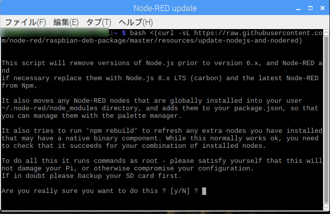 update-nodejs-and-nodered で再度アップデートする