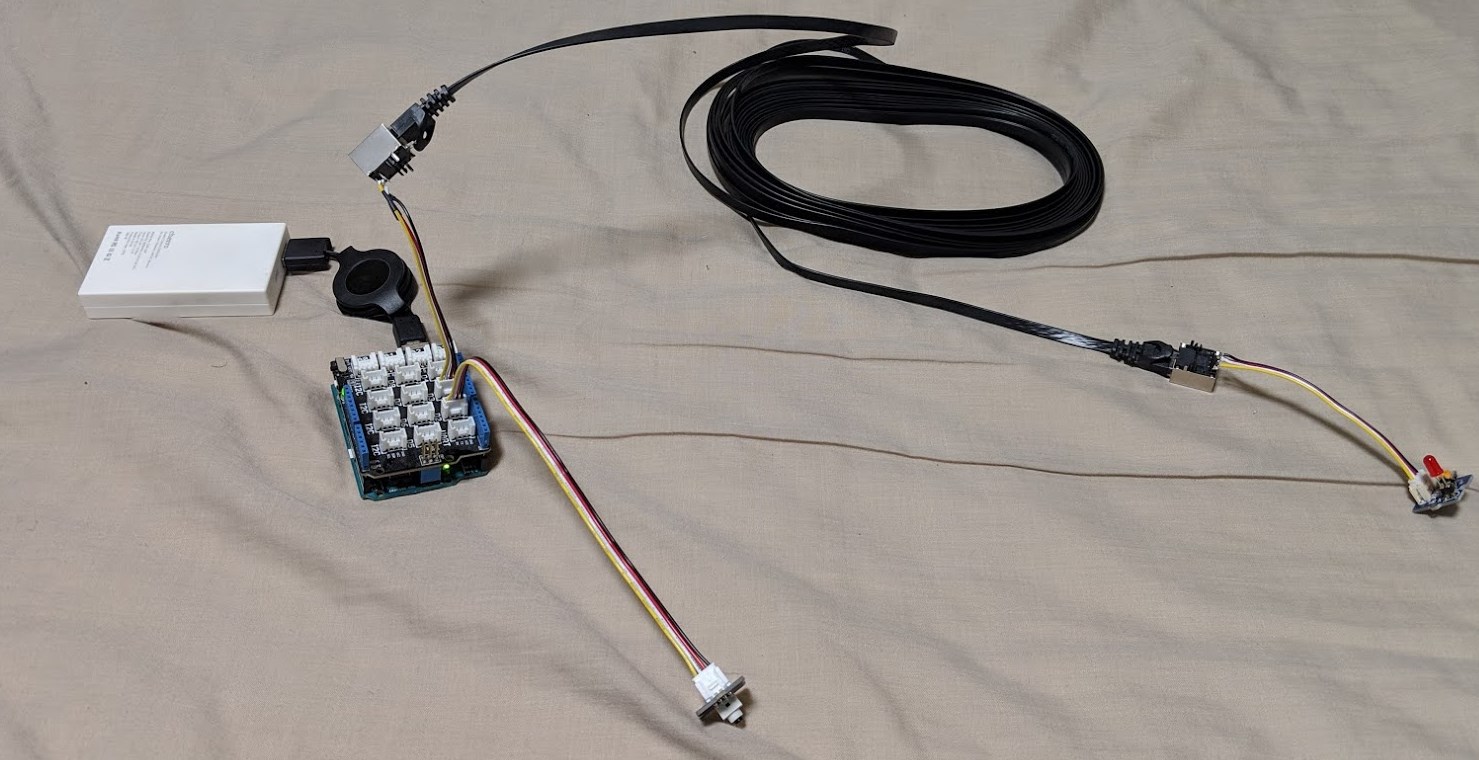 もうひとつ、デジタル出力のGrove LEDを延長したほうです。少し遠くから撮影しました。