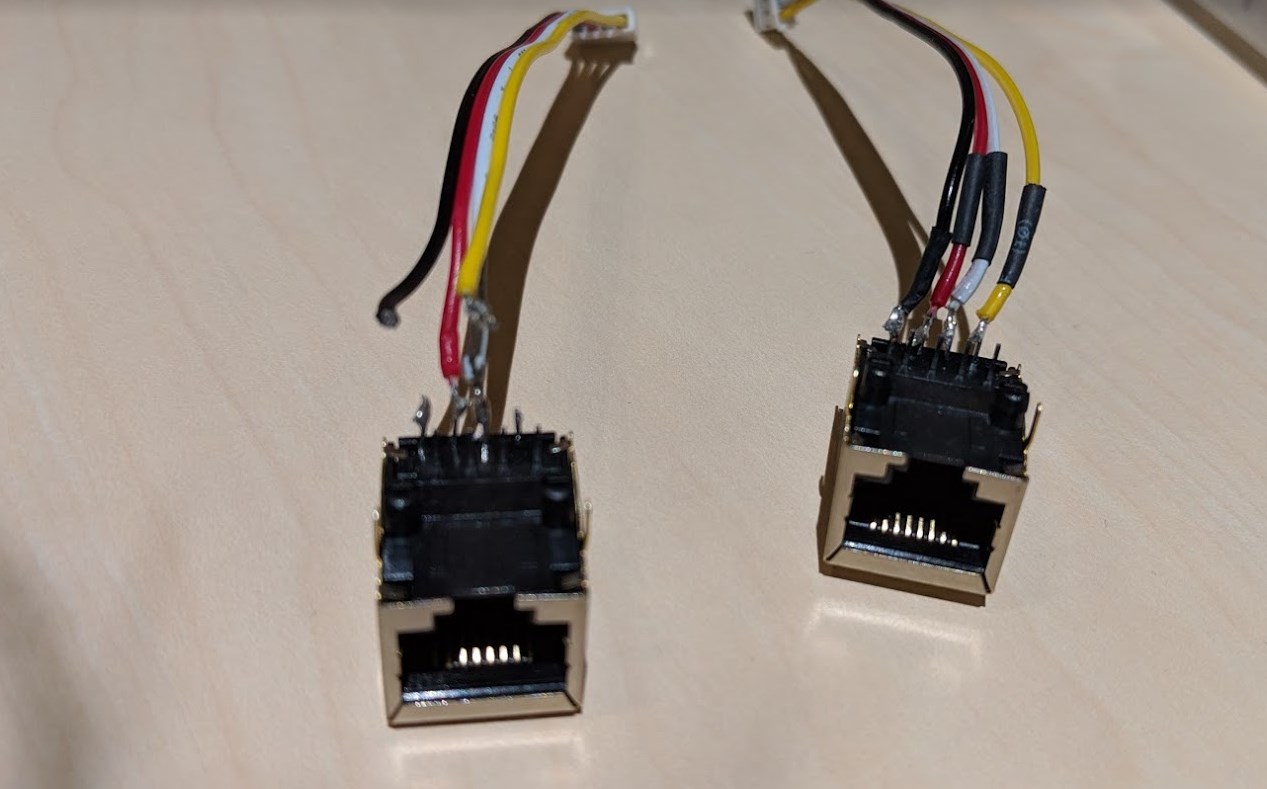 このときのコツとしては、LANのピンが同じ配列になるように、入力・出力ともにはんだ付けするピンの場所は同一にしましょう。写真の通り、見た目として待ったく同じになるということです。