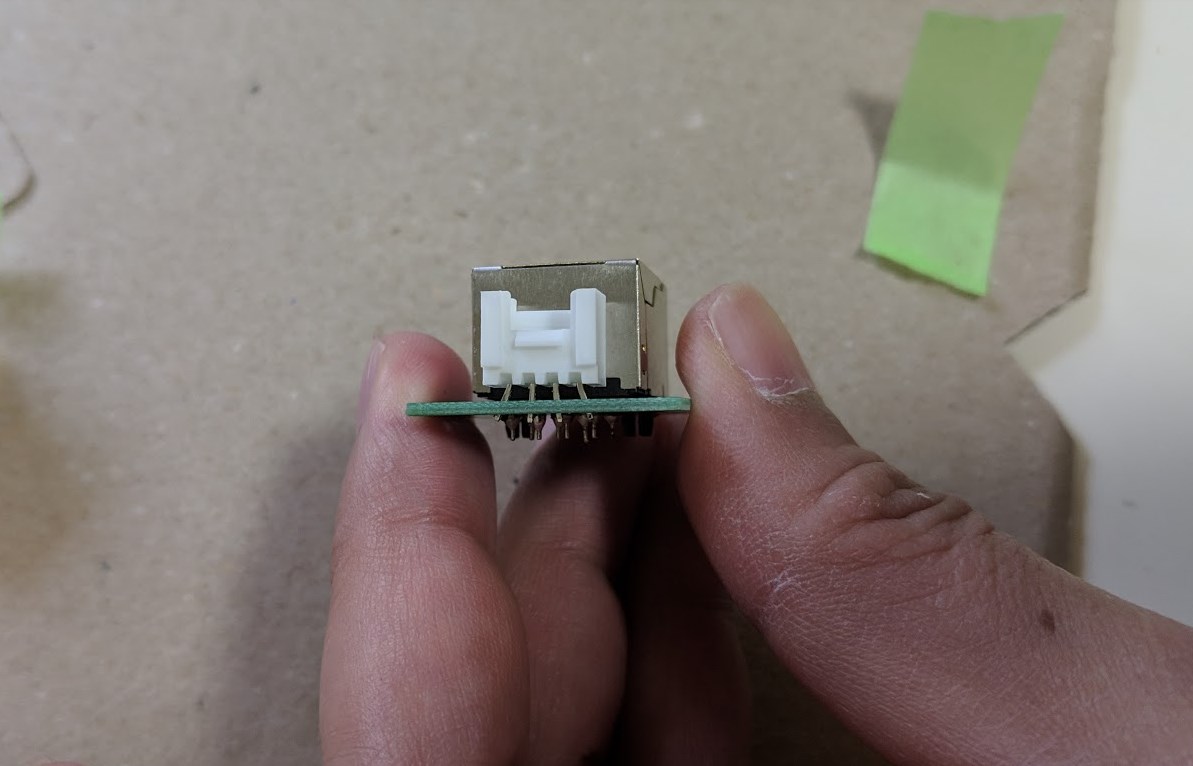 穴にガツンと食い込ませてはんだ付けをします。少々ギリギリですが、通電する程度には食い込みます。