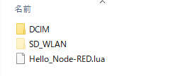 最上位の階層にHello_Node-RED.luaを置きます。先ほどのCONFIGで示したLUA_RUN_SCRIPTの /Hello_Node-RED.lua ですね。