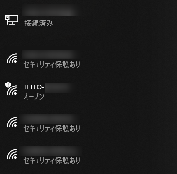 まず、Tello EDU起動すると、Wi-Fiリストから登場するので、接続します。