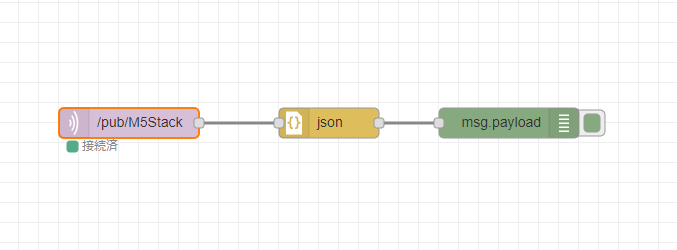 Node-REDではシンプルにMQTTから /pub/M5Stack のデータを受け取ります。