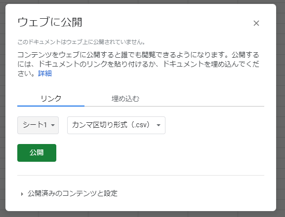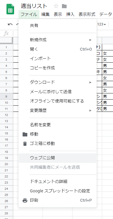 Googleスプレッドシートを作成し公開