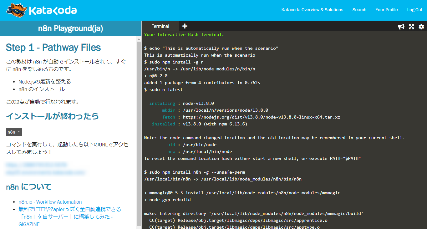 n8n Playground(ja) by 1ft-seabass | Katacoda