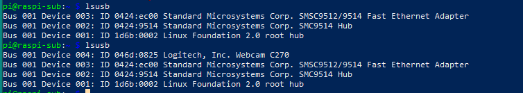 1度目が、WEBカメラを接続してない時。2度目が接続したときマス。こうすることで変化を分かりやすくして接続されたかを見ておきましょう。