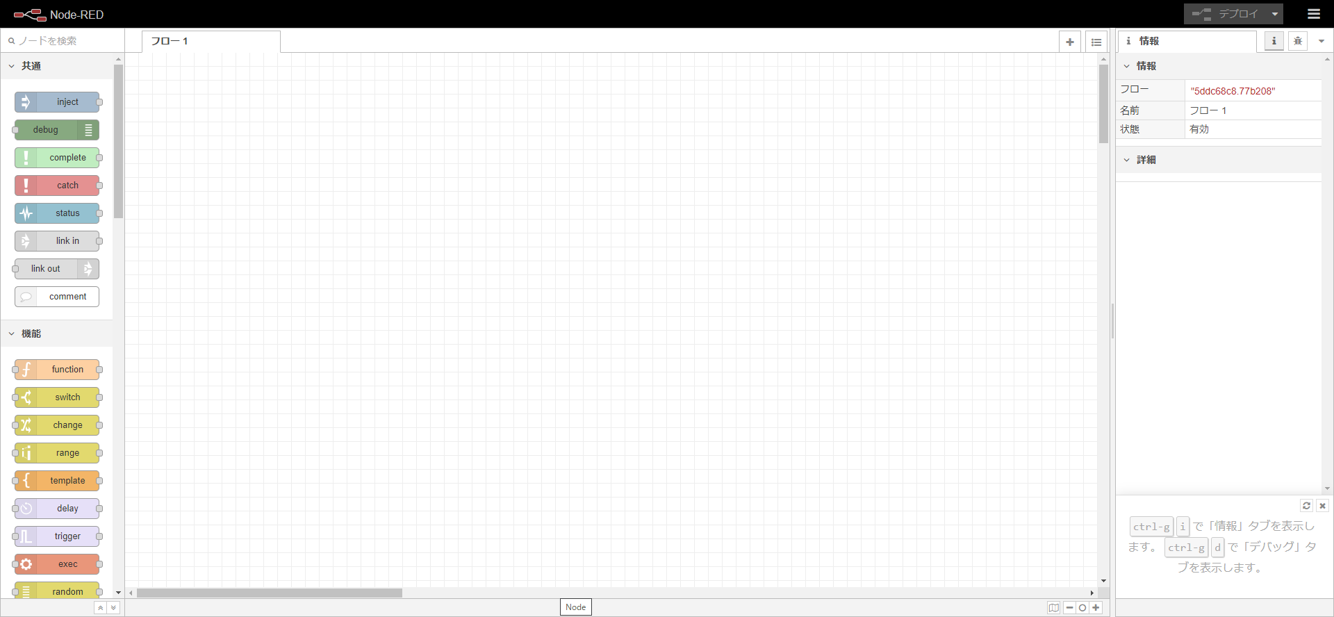 Node-RED は 1.0.3 で、Raspberry Piで実行する ドキュメントにある、Raspbian Busterに入っているものを最新にアップデートするために update-nodejs-and-nodered を利用しています。