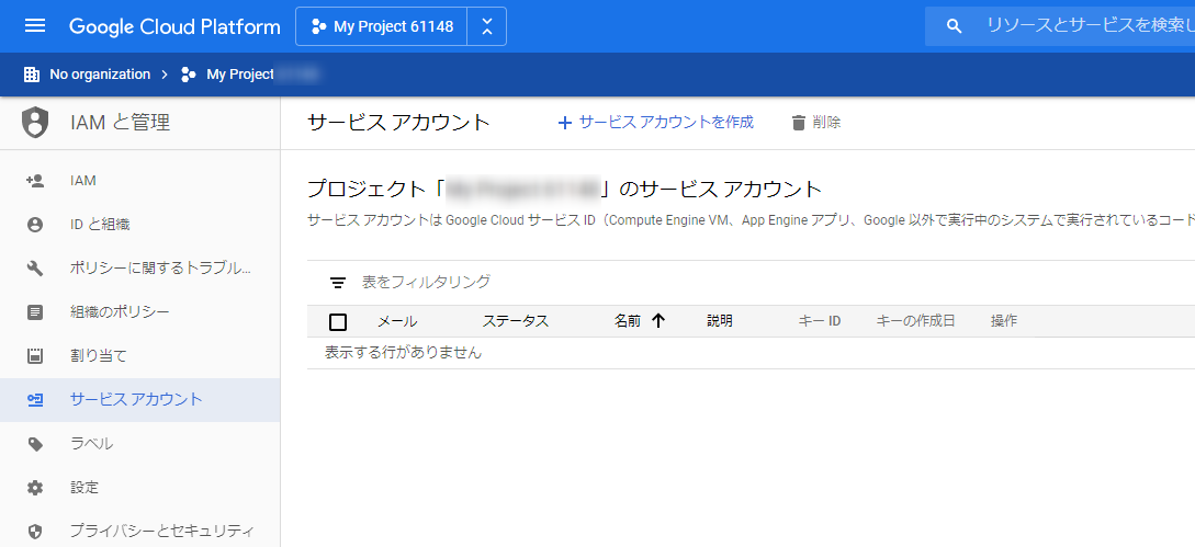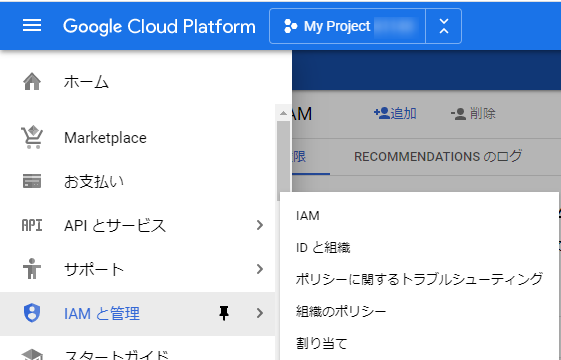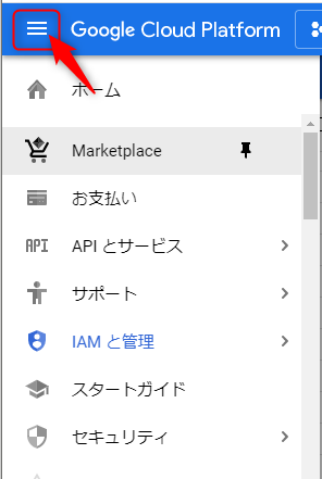 さきほどのハンバーガーメニューから IAMと管理 をクリックすれば戻ることができます。このあたりの遷移、慣れてないー。