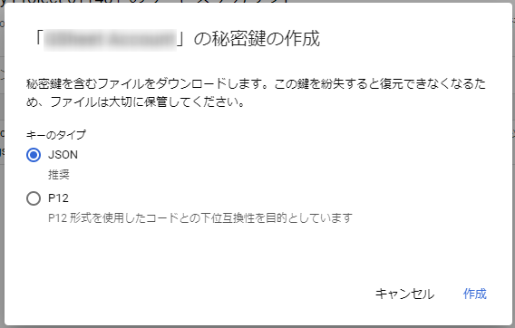 - JSON の鍵ファイルをサービス アカウントページでダウンロード