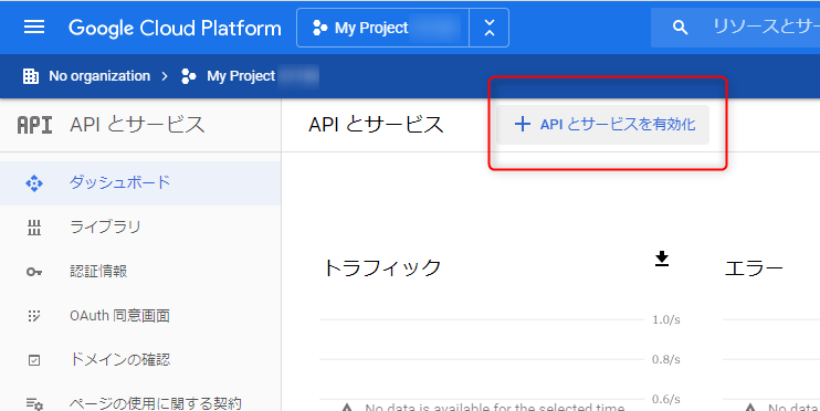 APIとサービスの有効化をクリックします。