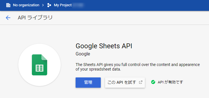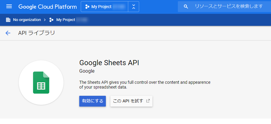 Sheets API を有効にする