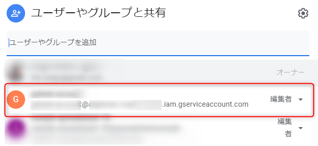 サービスアカウントのメールアドレスで使いたい Google スプレッドシートの共有に加える