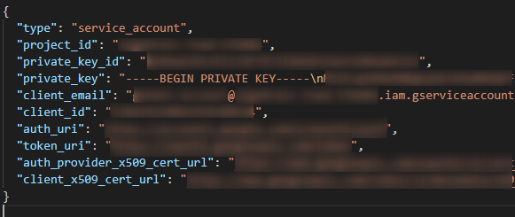 // ダウンロードしたJSON の鍵ファイルの中身をコピーアンドペースト