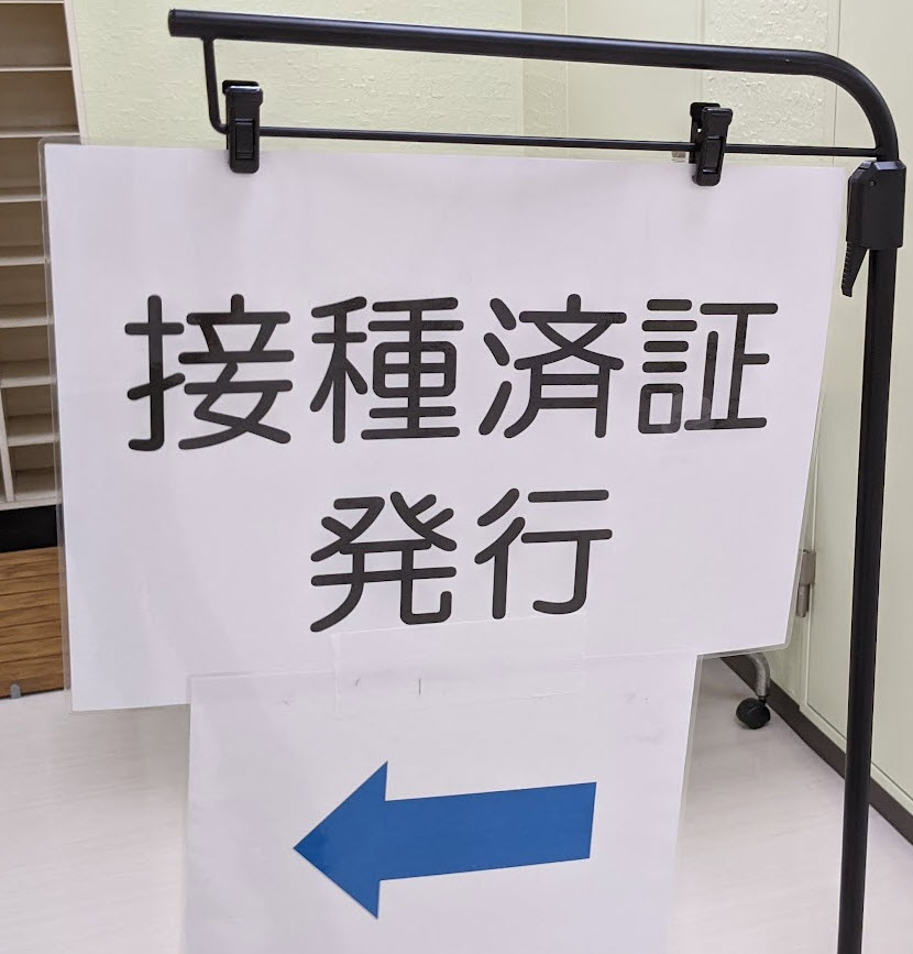 経過観察が終わったら接種済証発行の受付へ最後のフロー。この会場は医師の人がたくさんいて慣れた感じ。あとで妻に教えてもらったのですが中野区医師会が担当している会場だったそうです。結構、若手の医師の人がいて、こんな状況ではあるものの、対面や注射の経験が積めたんだろうなー。