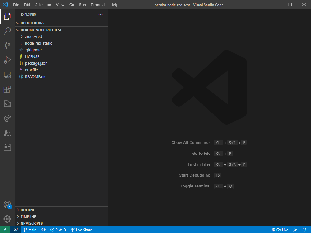 heroku-node-red-test フォルダを対象に Visual Studio Code を起動します。
