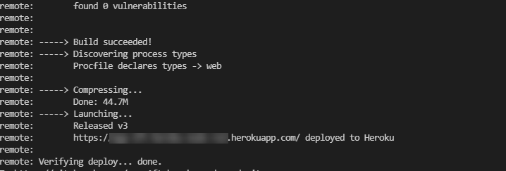 プロジェクトフォルダ直下で Herolu CLI のコマンドを実行して Heroku にアプリ作成します。
