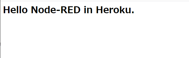 ごくごくシンプルな Hello Node-RED in Heroku. の文字が表示されているので httpStatic: './node-red-static/', で、フロントエンドまわりのファイルを置いて公開できる場所がちゃんと動いています。