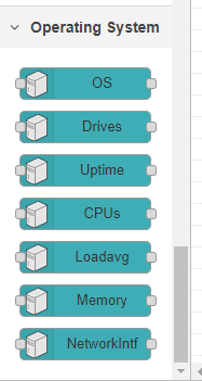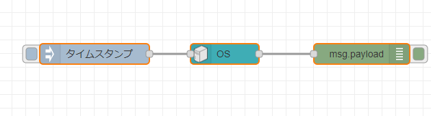ためしに、node-red-contrib-os ノードで OS情報を出力するだけのフローを作っておきます。うまくインストールされれば、無事動くはずのものです。