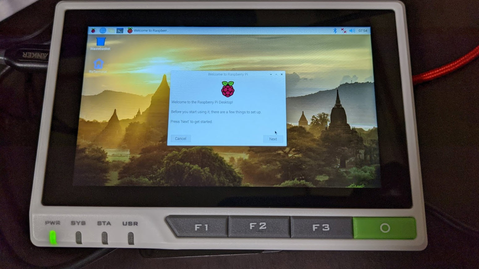 電源を入れてみたところ、なんなくプリインストール済みの Raspberry Pi OS が起動しました。