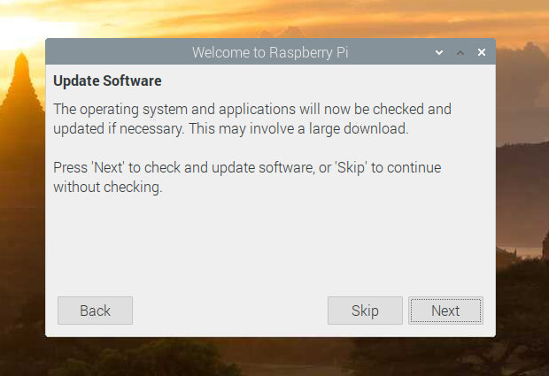 これを避けるために、初回セットアップのUpdate Softwareは「Skip」を選んでください。