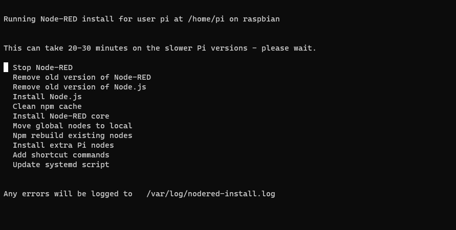 こちらのコマンドで、アップグレードする形で Node-RED を使えるようにします