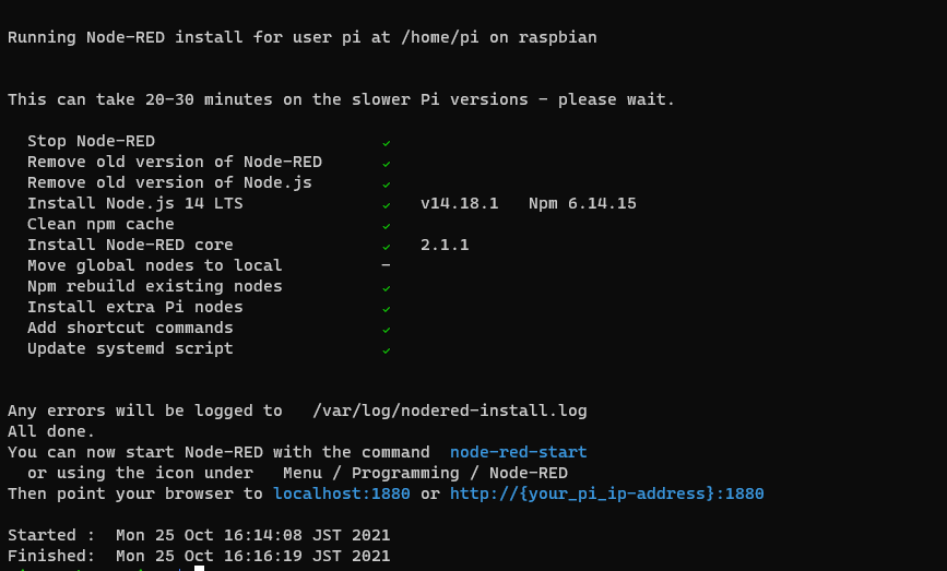 有線 LAN 接続で、しかも、Raspberry Pi 4 の実行速度なので、あっという間でした。