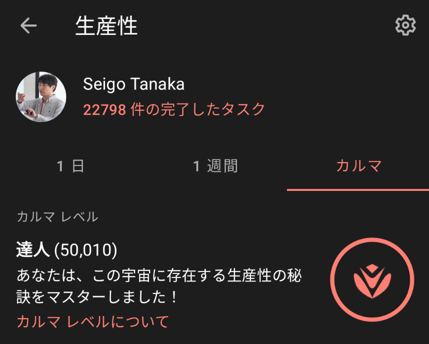Todoist のカルマレベルが 2022/01/01 に最高クラスの「達人」になったメモ