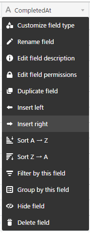 ということで先ほどのテーブルにフィールドを一つ加えます。どこでもいいですが、既存のフィールドの項目のところで右クリック。