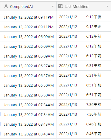 このように January 12, 2022 at 07:41AM という独特な日付になってしまって、AirTable のカラムに素直に Date 型をあてることもできなくて、とても扱いにくいんです。