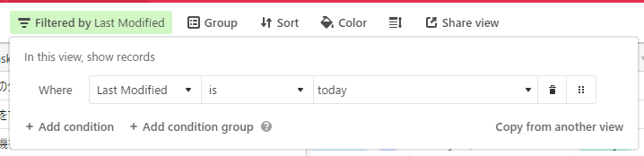 これができると、フィルタ機能で「今日変更(登録)されたのレコードをフィルタ」みたいなビューが作れるので便利です!