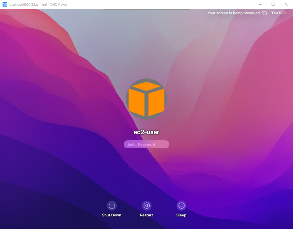 無事アクセスできました。これは localhost でバイパスしてますが、最終的に セキュリティグループで VNC 5900 ポートを解放してバイパスせずに直アクセスするようにしました。