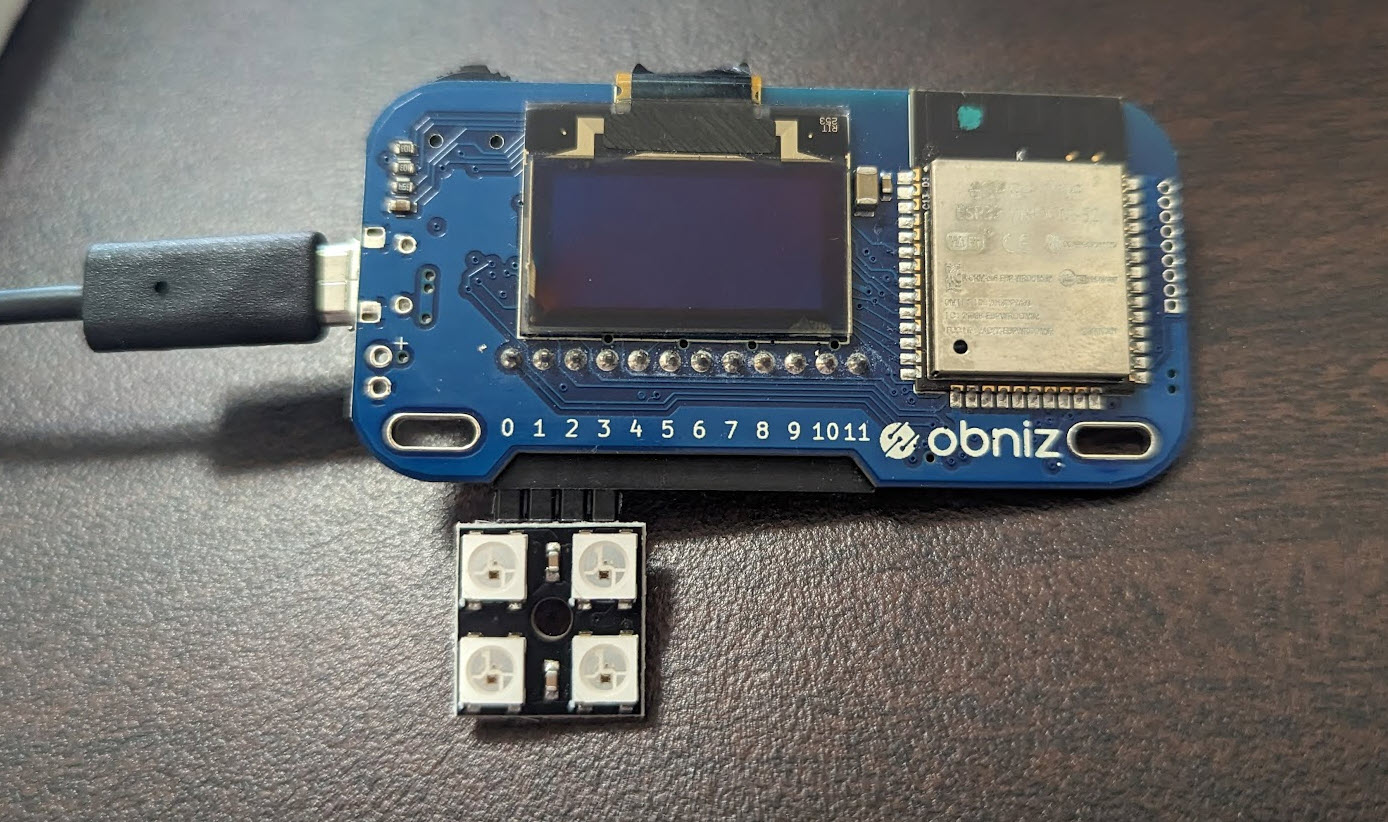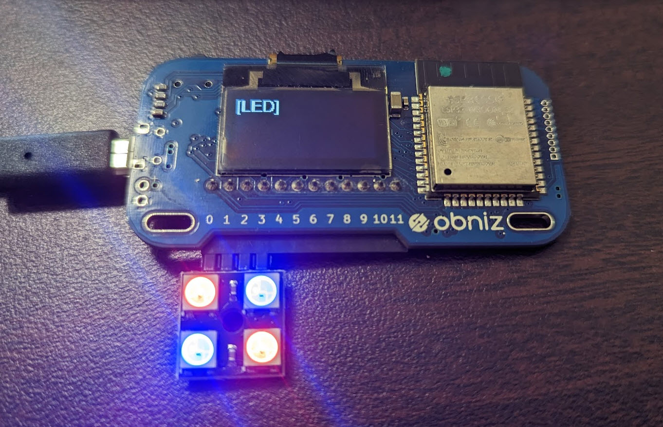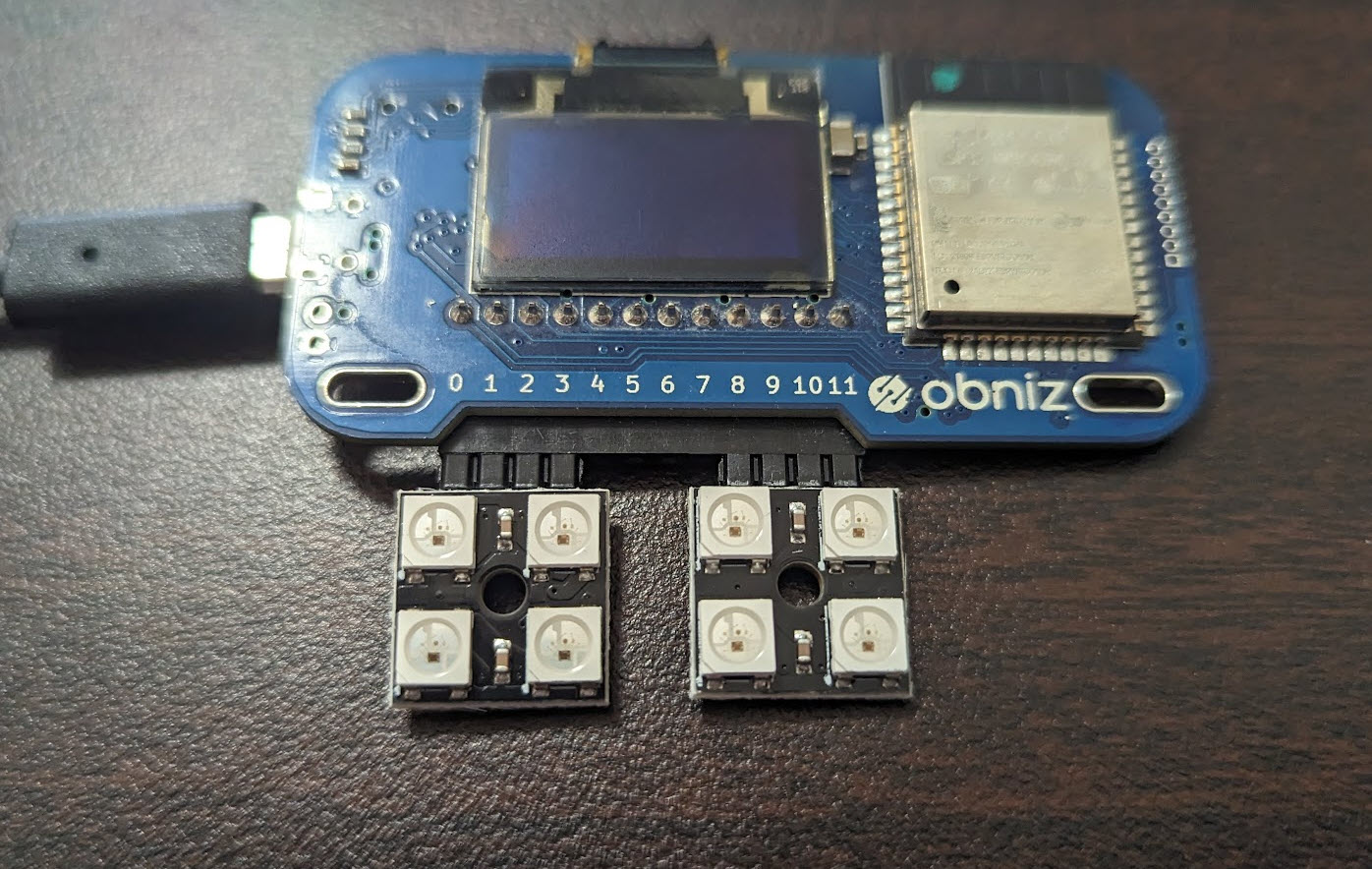 共立エレショップのピンヘッダ実装済 NeoPixel WS2812B フルカラー LED モジュール 4 素子・5 素子を obniz で動かしたメモです。