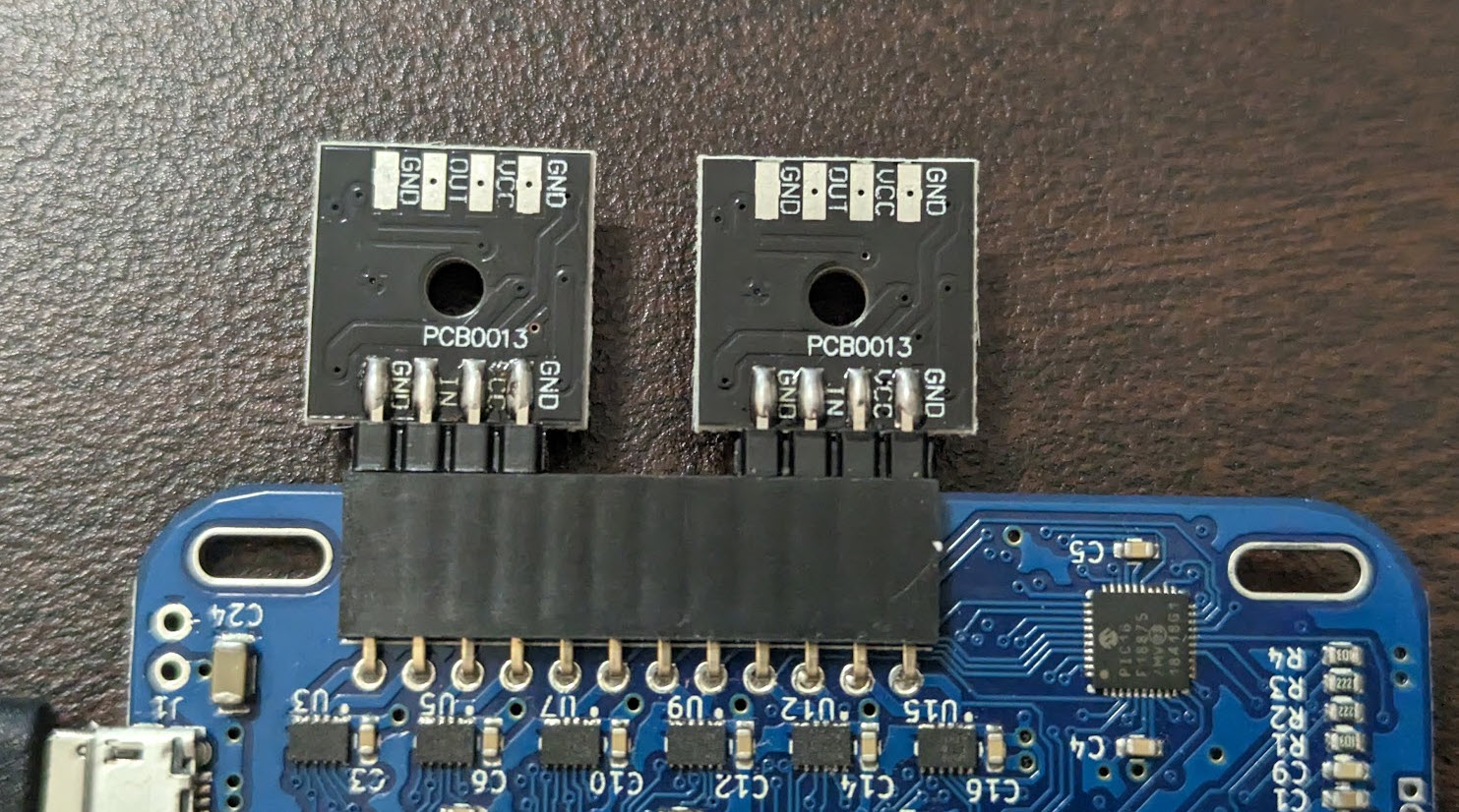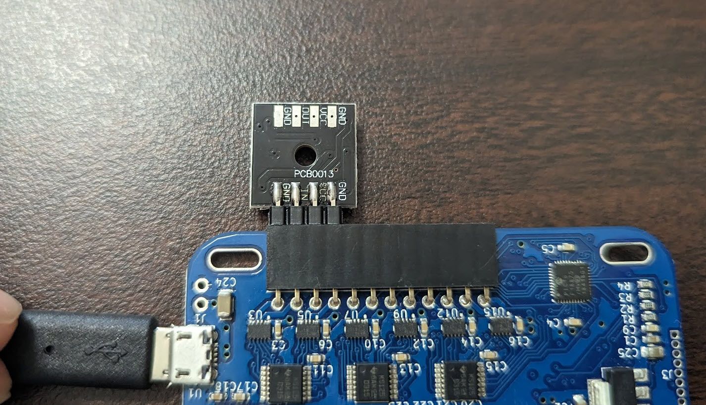 このような見た目。よく見ると、ピンヘッダが 3 つですね。