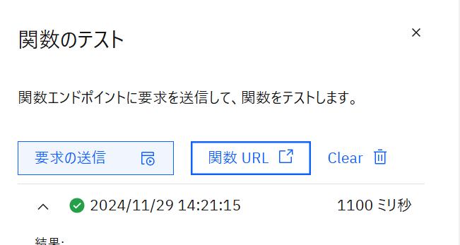 作成できたので、関数のテストボタンをクリックします。