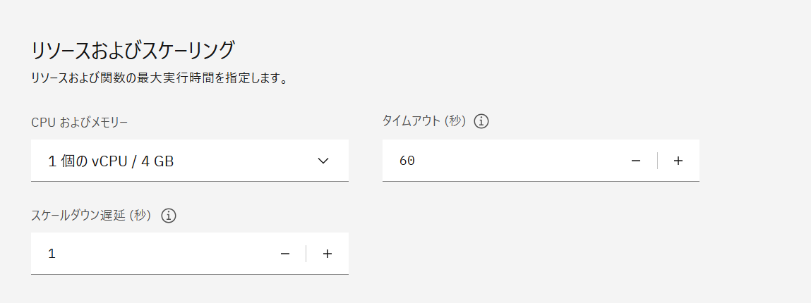 リソースとスケーリングはそのまま使います。