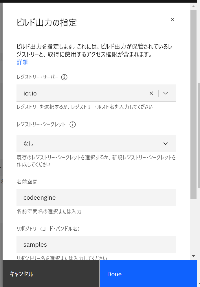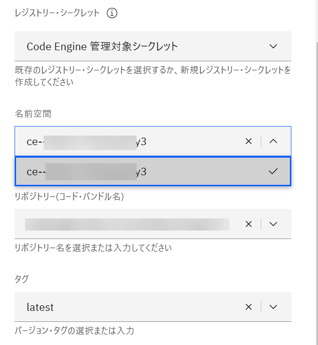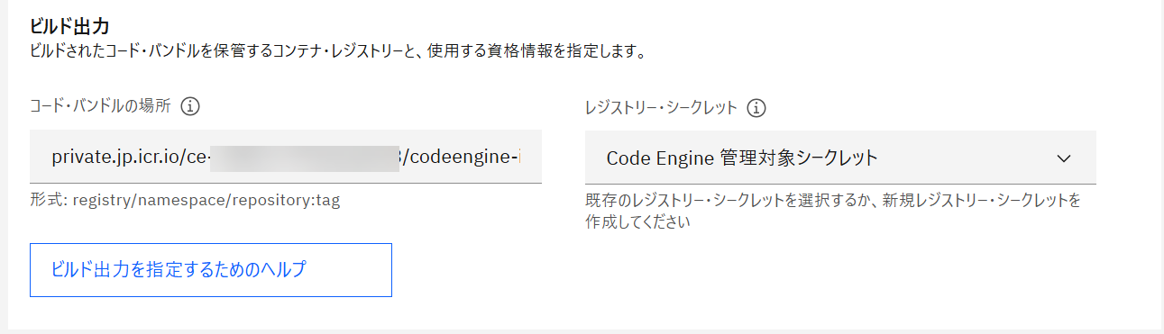 レジストリーシークレットは Code Engine 管理対象シークレットを指定。