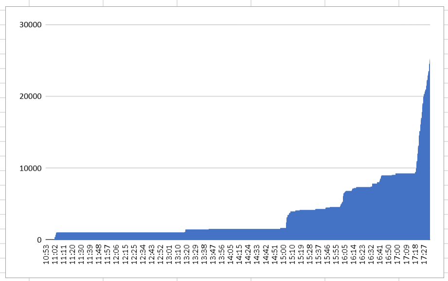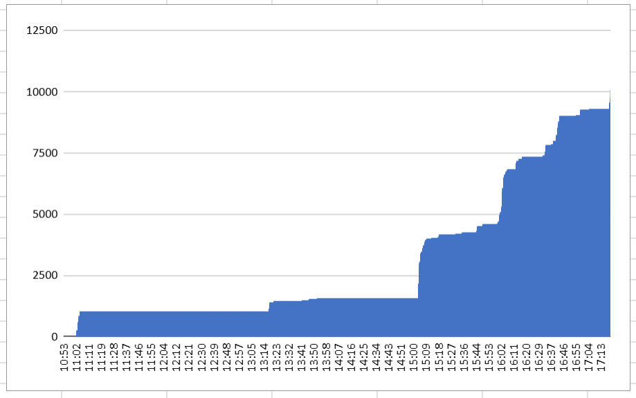 実際には、そのラストの超連打のところを省いたとしても、10000 程度までリアクションが盛り上がりました。
