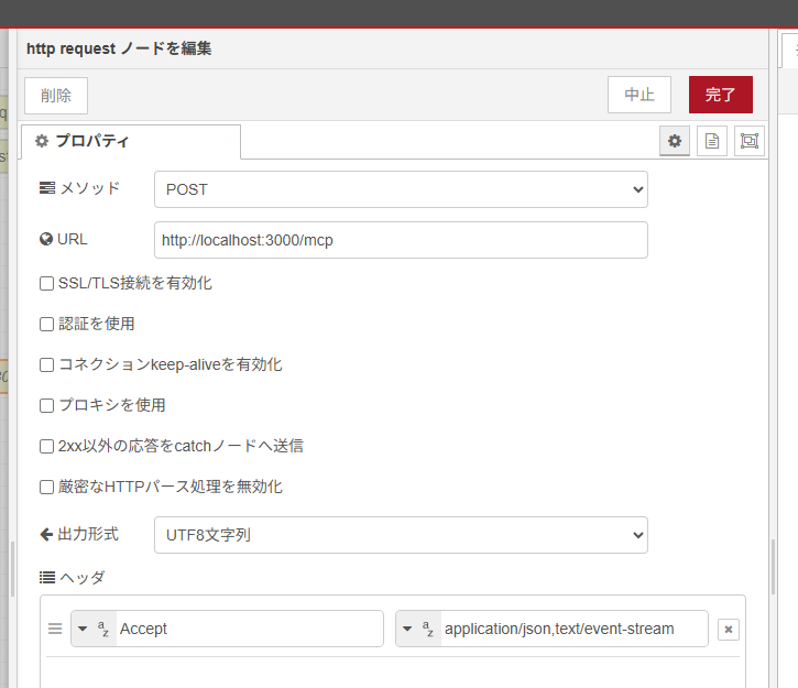 2025年4月時点 Node-RED の HTTP request ノードでローカルのステートレス MCP サーバーと連携するメモ