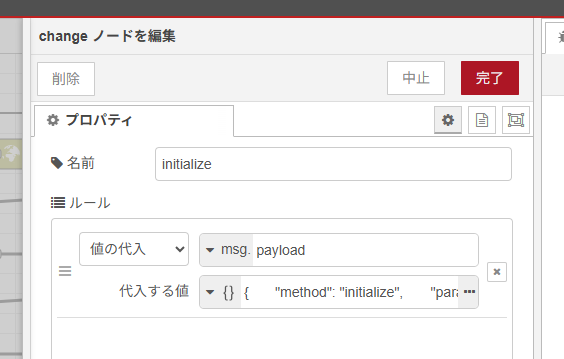 実際に足し算を5+6でさせる JSON をつくる change ノードです。