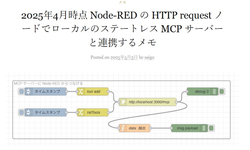 2025 年 4 月時点 Node-RED からローカルのステートフル MCP サーバーと連携するメモです。