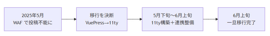 - 上記データを元に 11ty へ静的サイト構築環境を移行し Markdown 記事書き出しは保った状態で新ブログ環境を AI 併走で開発